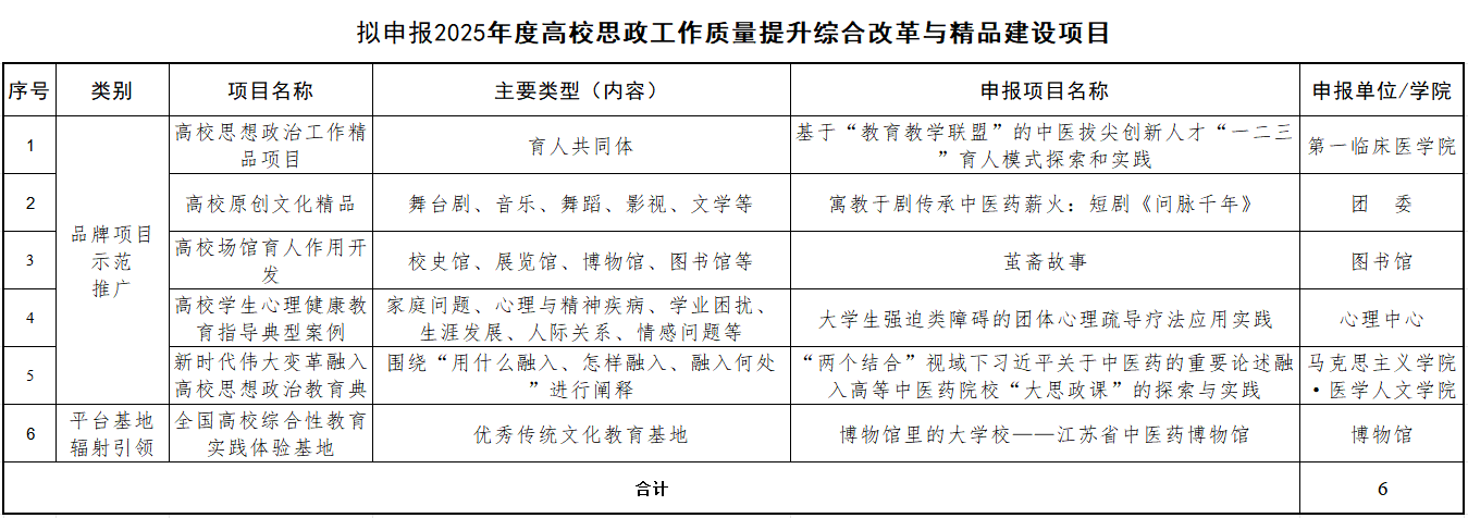 关于拟申报教育部2025年度高校思想政治工作质量提升综合改革与精品建设项目的公示