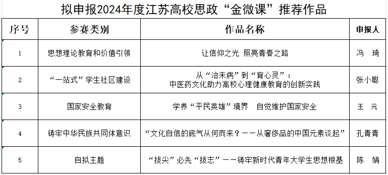 关于拟申报2024年度江苏高校思政“金微课”项目的公示